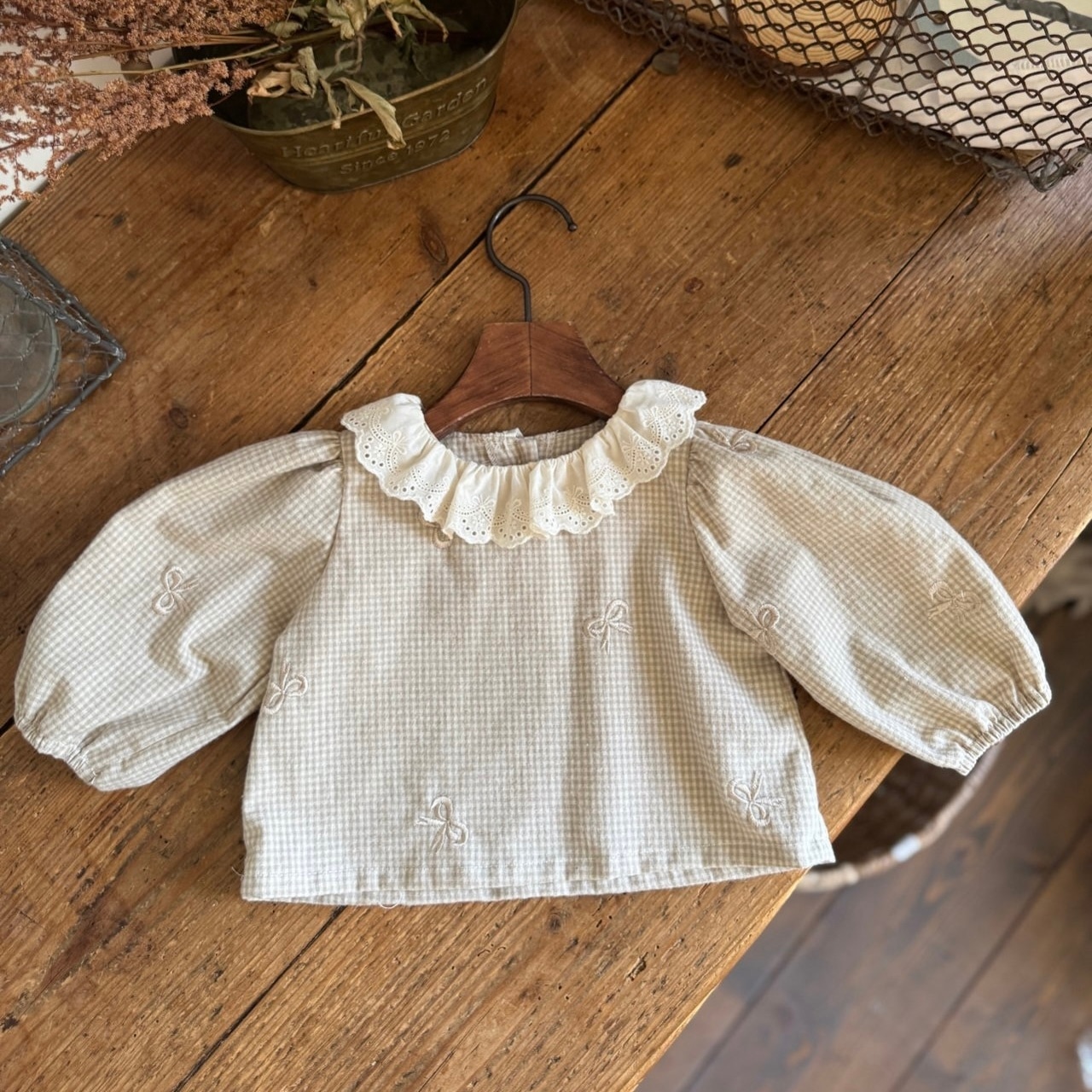 チェックの生地に、リボンの刺繍があしらわれた可愛い商品!