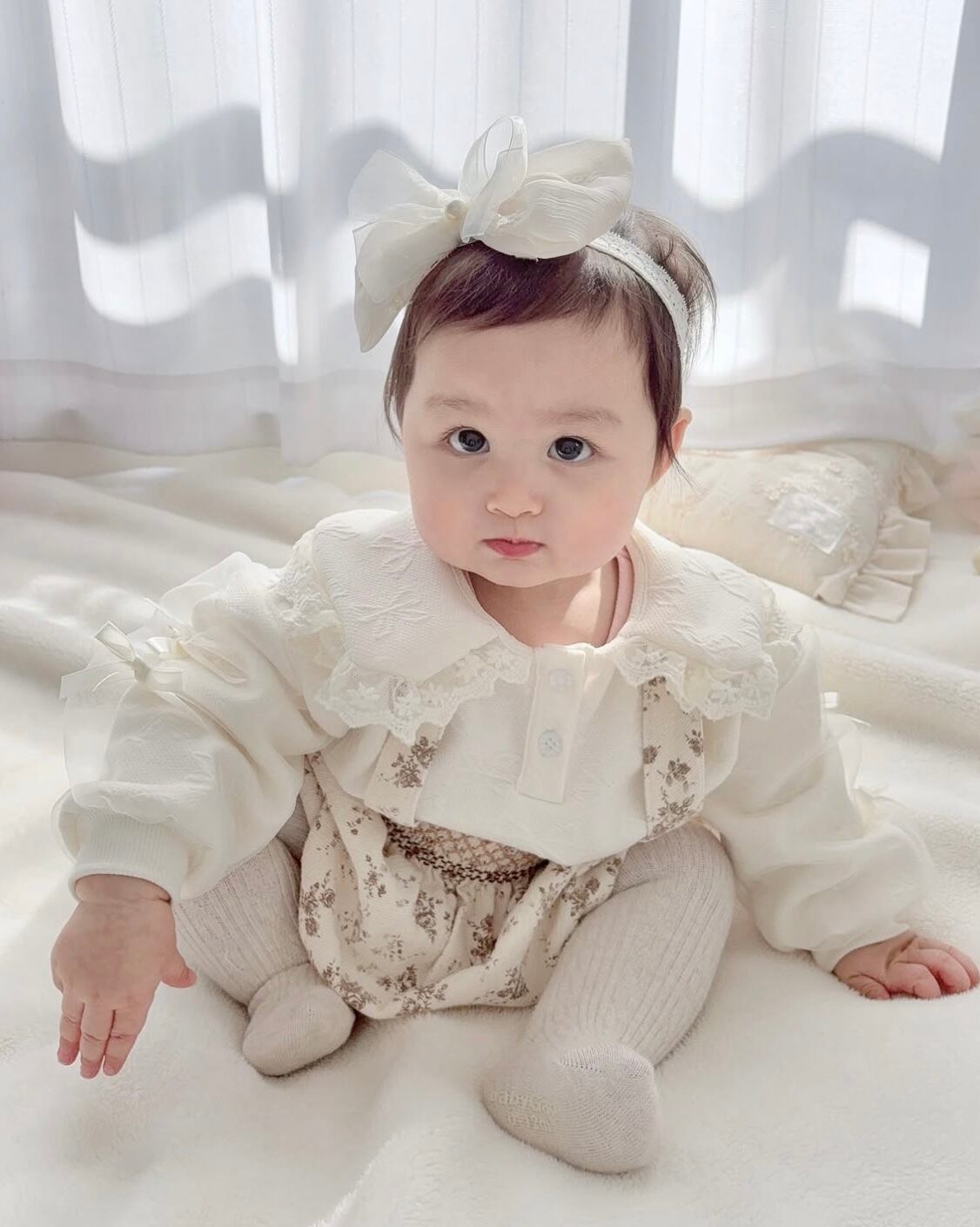 ribbon柄の生地に、袖部分はチュールでふわっとしています♡